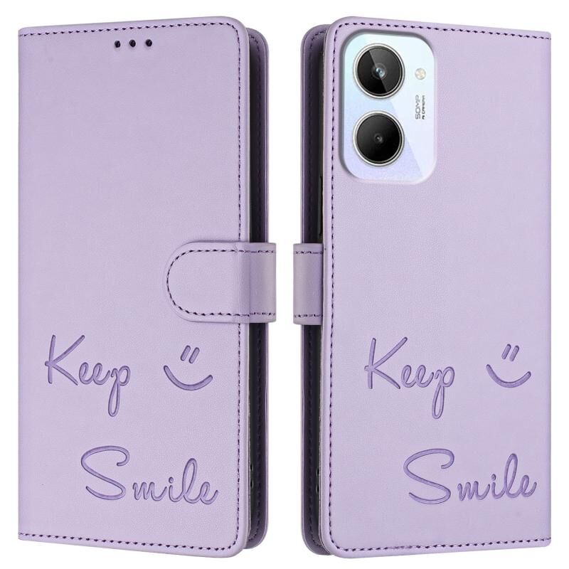 Για Realme 10 4G Global Smile Ανάγλυφο RFID δερμάτινη θήκη τηλεφώνου (Light Purple)