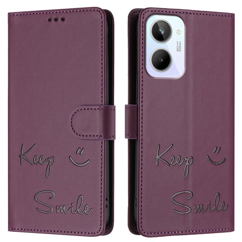Για Realme 10 4G Παγκόσμια χαμόγελο ανάγλυφο RFID δερμάτινη θήκη τηλεφώνου (Violet)