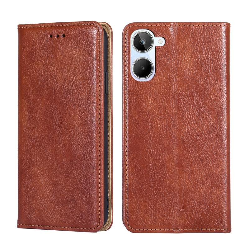 Για Realme 10 4G Gloss Oil Solid Color μαγνητική δερμάτινη θήκη τηλεφώνου (καφέ)