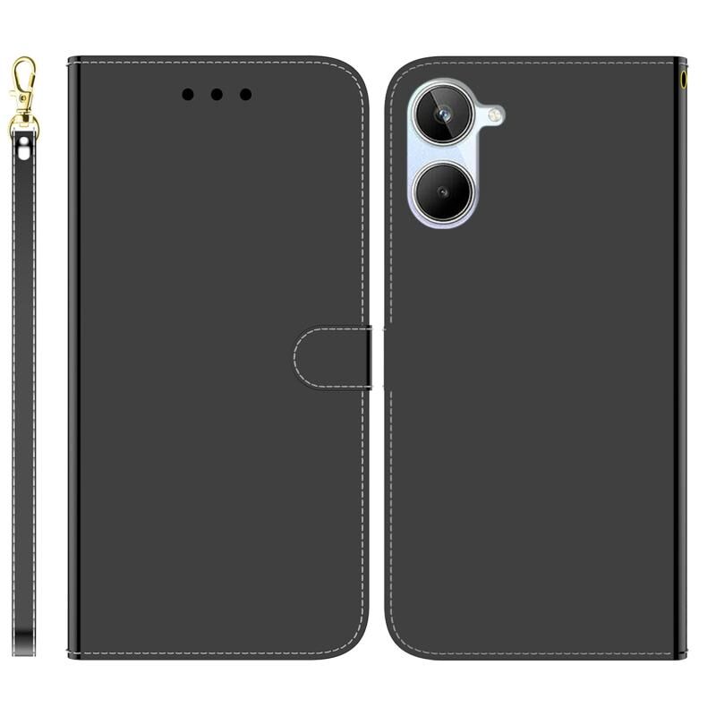 Για Realme 10 4G Απομιμητική επιφάνεια καθρέφτη οριζόντια Flip δέρμα τηλέφωνο υπόθεση (μαύρο)