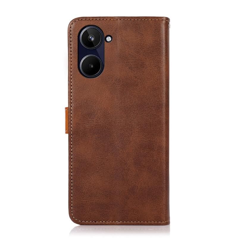 Για Realme 10 4G KHAZNEH Δερμάτινη θήκη κινητού με διχρωμία και υφή δέρματος αγελάδας (Μαύρο)