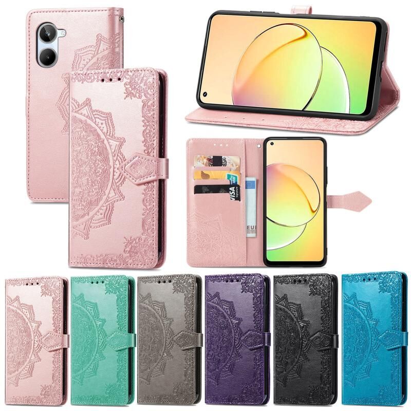 Για Realme 10 4G Mandala λουλούδι ανάγλυφο δερμάτινη θήκη τηλεφώνου (γκρι)