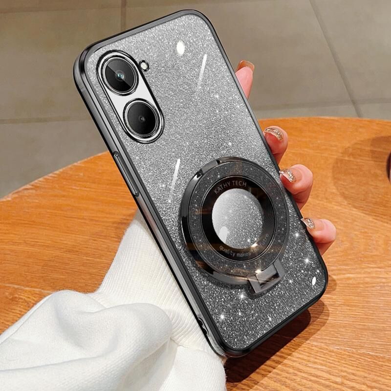 For Realme 10 4G Plated Gradient Glitter Round Holder TPU Phone Case(Black)