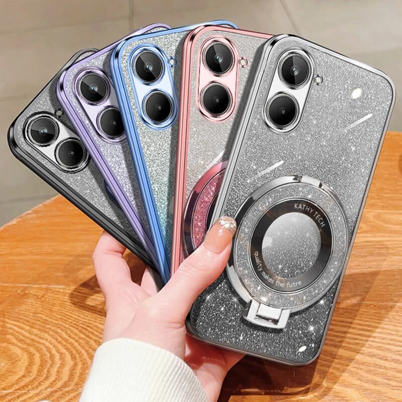 For Realme 10 4G Plated Gradient Glitter Round Holder TPU Phone Case(Sierra Blue)