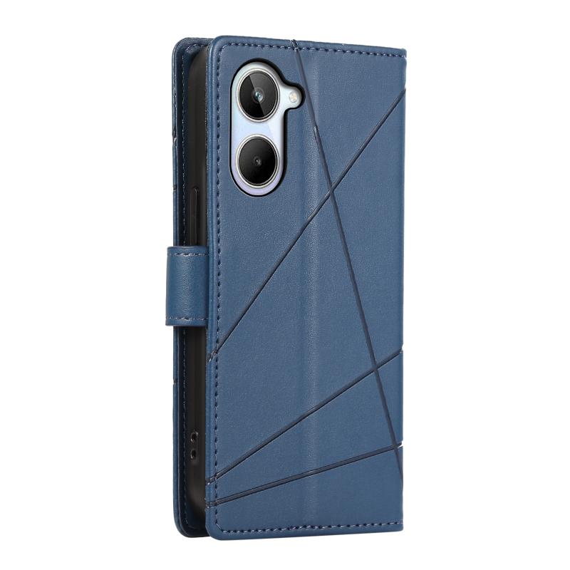 For Realme 10 4G PU Genuine Leather Texture Embossed Line Phone Case(Blue)