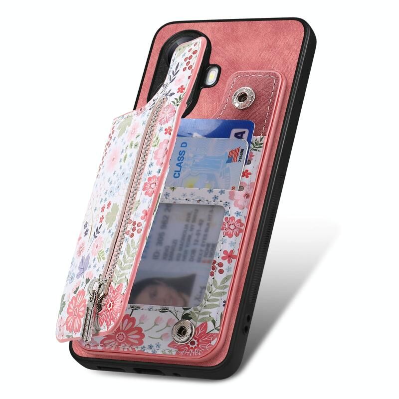 Για Realme 10 4G Ρετρό ζωγραφισμένο φερμουάρ πορτοφόλι πίσω θήκη τηλεφώνου (ροζ)