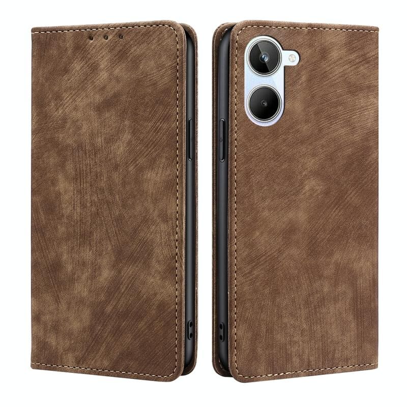 Για Realme 10 4G RFID Anti-theft Brush Μαγνητική θήκη τηλεφώνου από δέρμα (καφέ)