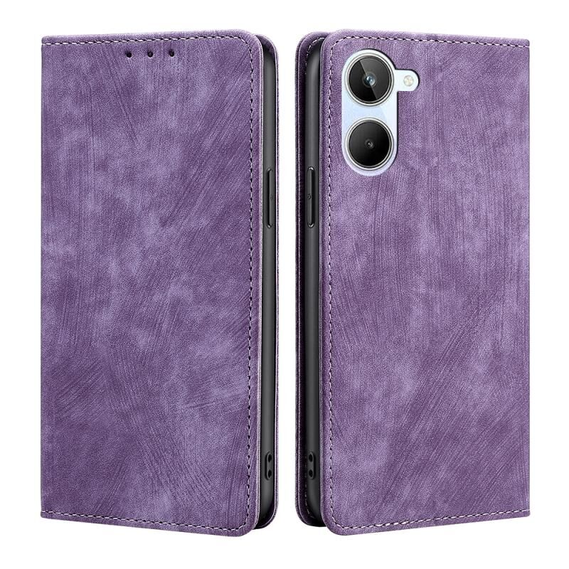Για Realme 10 4G RFID Anti-theft Brush Μαγνητική θήκη τηλεφώνου από δέρμα (μωβ)
