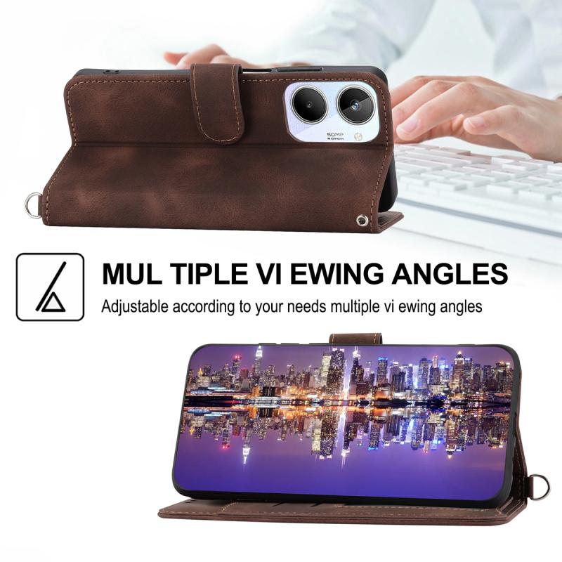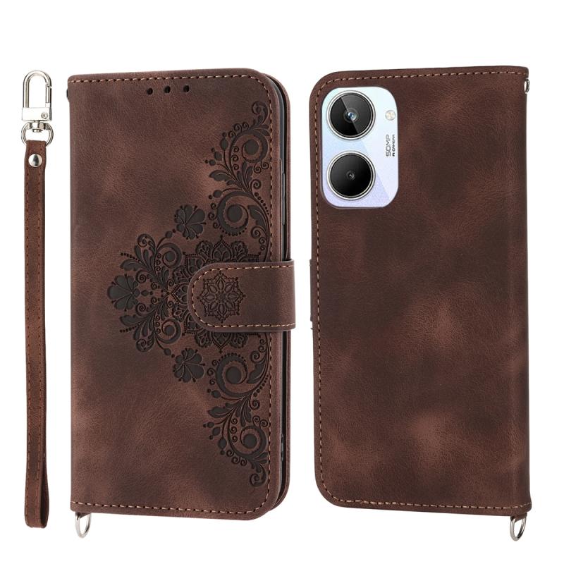 For Realme 10 4G Skin-feel Flowers Embossed Wallet Leather Phone Case(Brown)