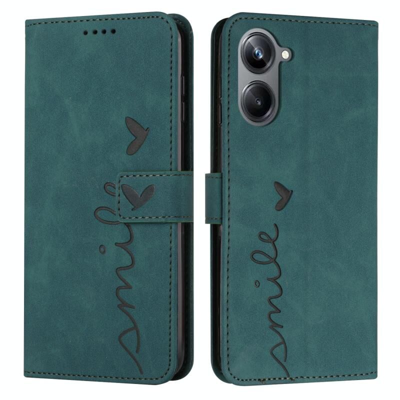 Για Realme 10 4G δέρμα αίσθηση καρδιάς ανάγλυφη δερμάτινη θήκη τηλεφώνου (πράσινο)