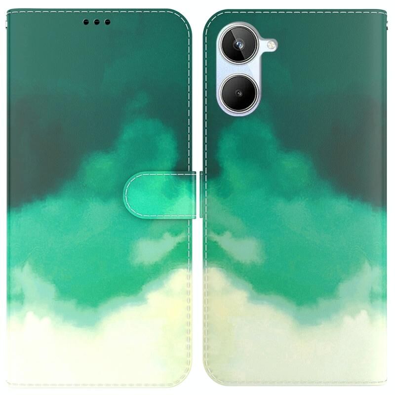 Για Realme 10 4G Υδατογραφία μοτίβο Flip δέρμα τηλέφωνο υπόθεση (Cyan Green)