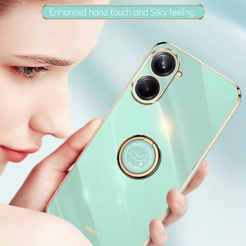 Θήκη τηλεφώνου Realme 10 4G XINLI με ευθείες άκρες, ηλεκτρολυτική επίστρωση TPU με δακτύλιο (Μωβ Κερασιά) (XINLI)