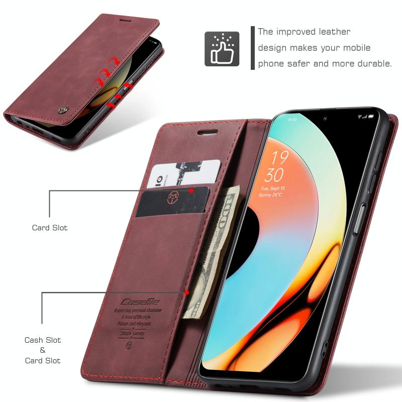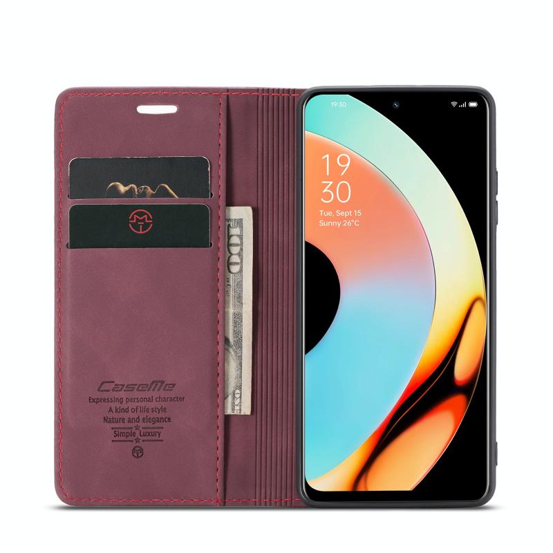 Θήκη για Realme 10 Pro 5G CaseMe 013 Πολυλειτουργική Οριζόντια Δερμάτινη Θήκη Τηλεφώνου (Μαύρο) (Κρασοκόκκινο)