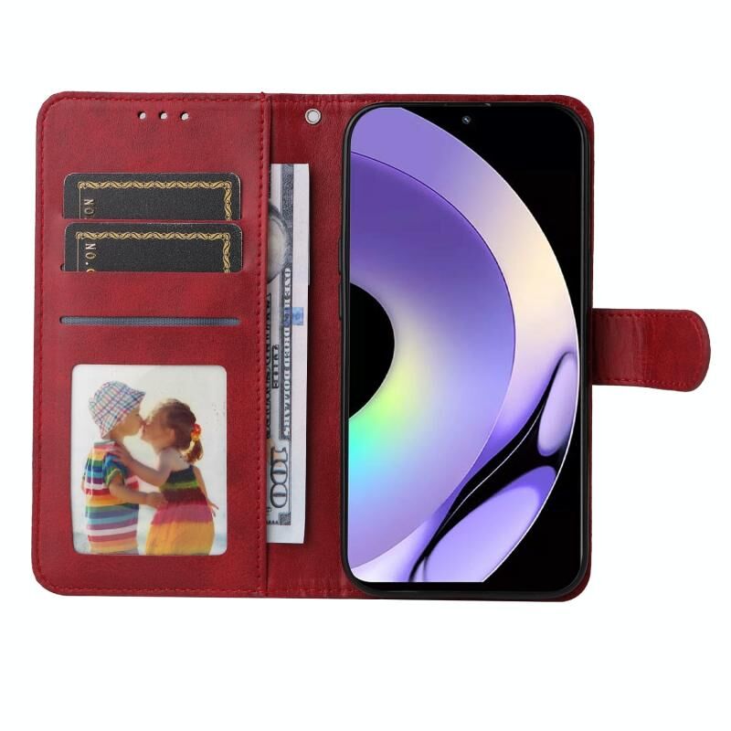 Για Realme 10 Pro 5G Κλασική θήκη τηλεφώνου από δέρμα με υφή μοσχαριού (κόκκινο)