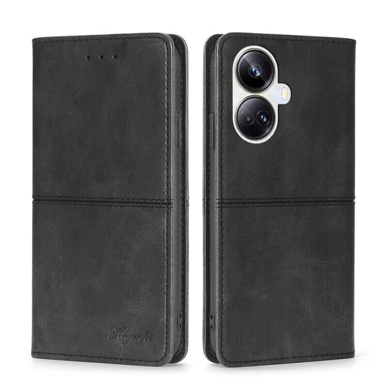 Για Realme 10 Pro + 5G Cow Texture Μαγνητική οριζόντια Flip δερμάτινη θήκη τηλεφώνου (Μαύρο)