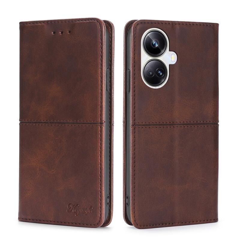 Για Realme 10 Pro + 5G Cow Texture μαγνητική οριζόντια Flip δέρμα τηλέφωνο υπόθεση (σκούρο καφέ)