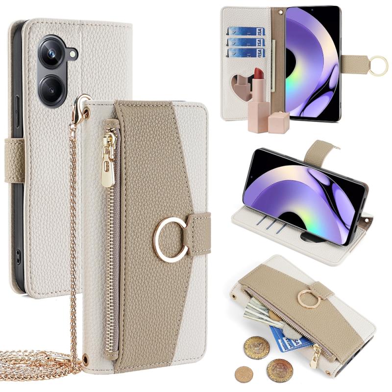 For Realme 10 Pro 5G Crossbody Litchi Texture Leather Phone Case(White)