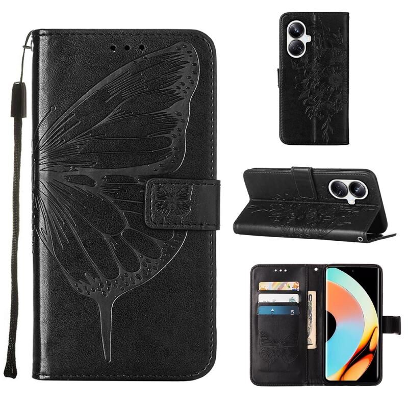Θήκη τηλεφώνου από δέρμα με ανάγλυφο σχέδιο πεταλούδας για Realme 10 Pro+ 5G (Μαύρο)