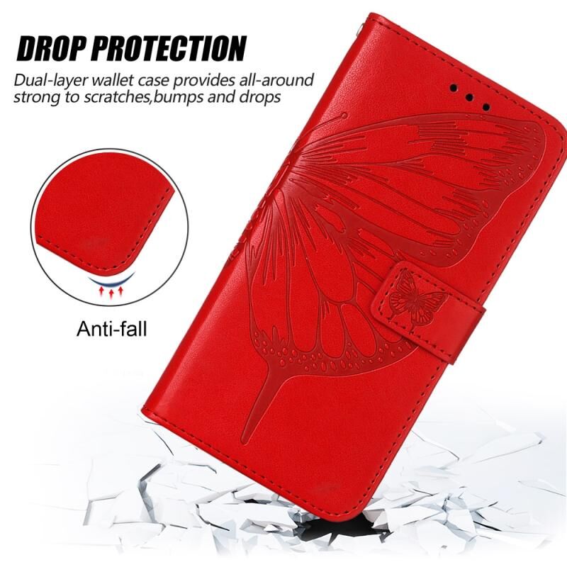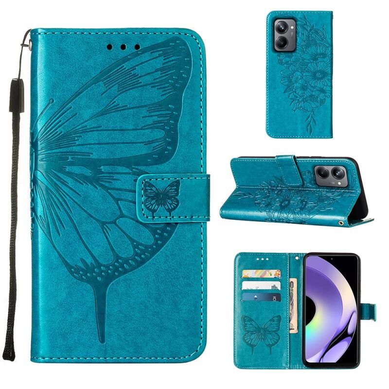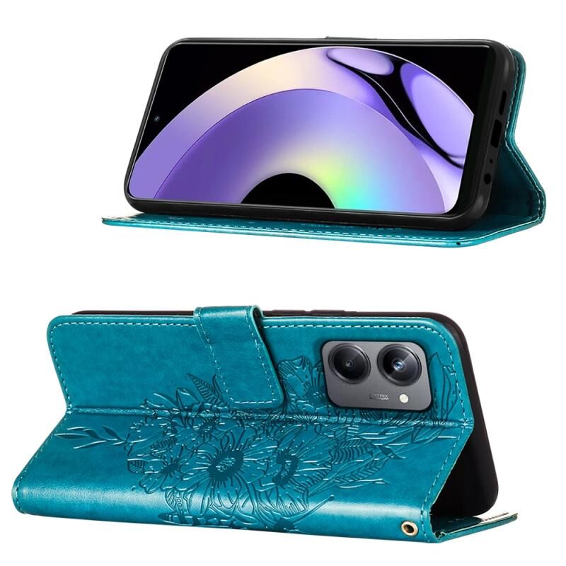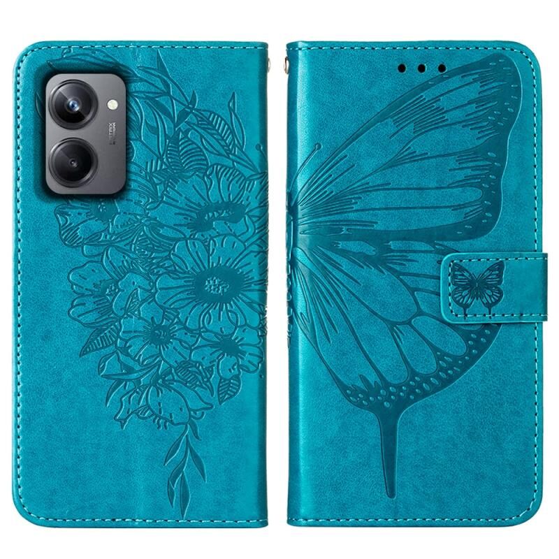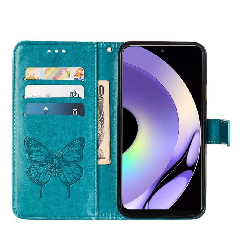 Θήκη τηλεφώνου από δέρμα με ανάγλυφο σχέδιο πεταλούδας για Realme 10 Pro 5G (Σκούρο Μωβ)