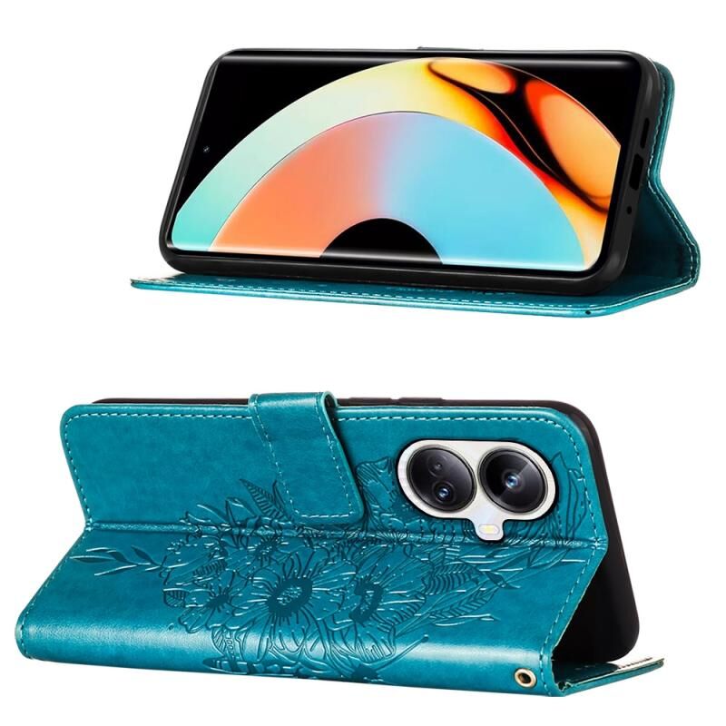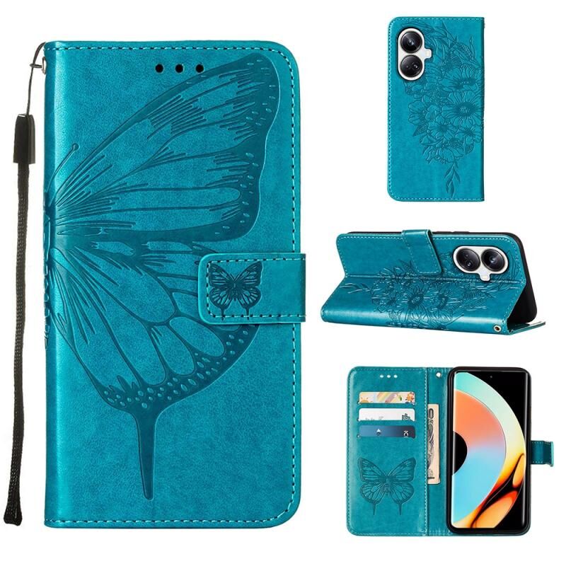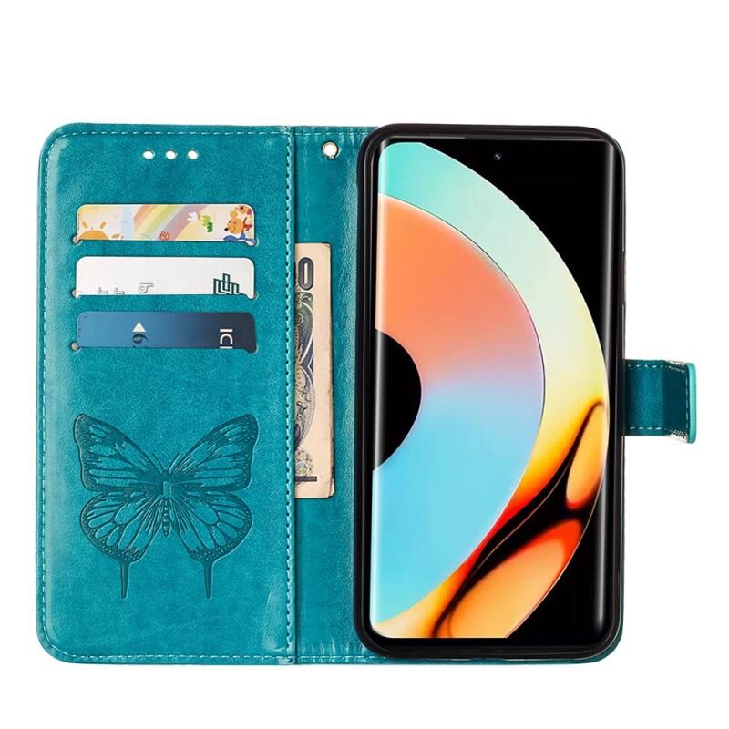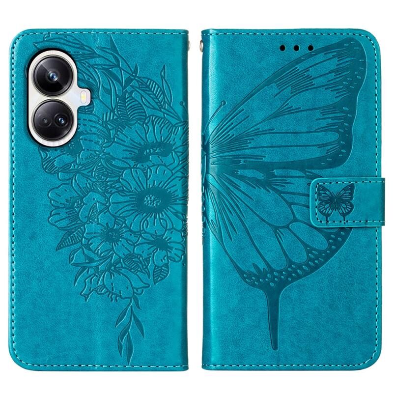 Θήκη τηλεφώνου από δέρμα με ανάγλυφο σχέδιο πεταλούδας για Realme 10 Pro+ 5G (Μαύρο)