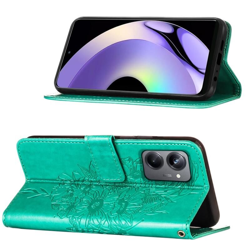 Θήκη τηλεφώνου από δέρμα με ανάγλυφο σχέδιο πεταλούδας για Realme 10 Pro 5G (Σκούρο Μωβ)