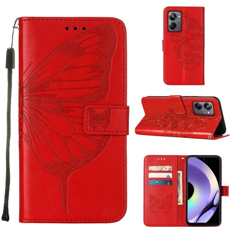 Θήκη τηλεφώνου από δέρμα με ανάγλυφο σχέδιο πεταλούδας για Realme 10 Pro 5G (Σκούρο Μωβ)
