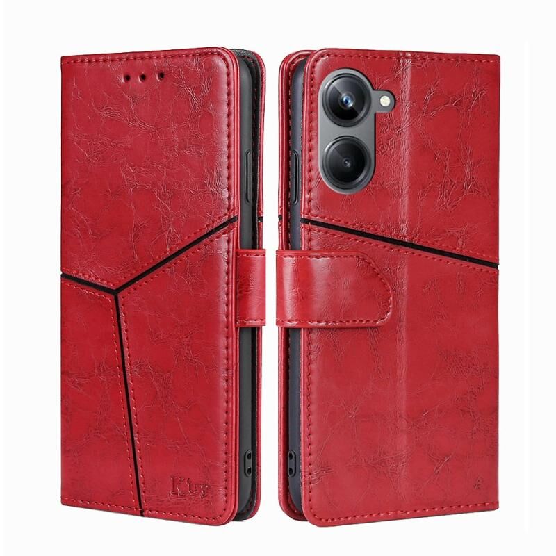 Για Realme 10 Pro 5G γεωμετρική ραφή οριζόντια Flip δερμάτινη θήκη τηλεφώνου (κόκκινο)
