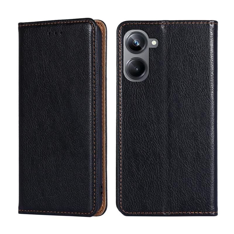 Για Realme 10 Pro 5G Gloss Oil Solid Color Μαγνητική δερμάτινη θήκη τηλεφώνου (μαύρο)