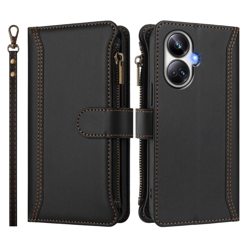For Realme 10 Pro+ 5G Magnetic Closure 9 Card Slots Zipper Leather Case with Hand Strap(Black)