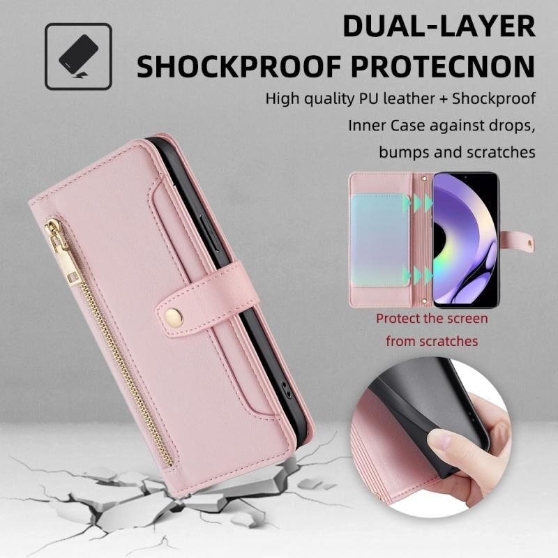 Θήκη τηλεφώνου δερμάτινη με φερμουάρ και σχέδιο αρνιού για Realme 10 Pro 5G (Μαύρο)