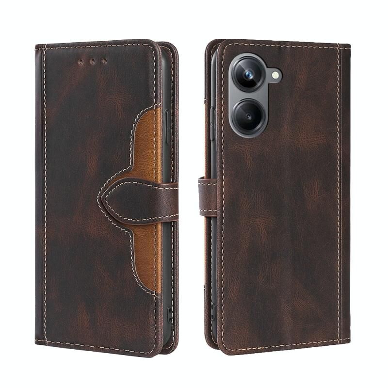 Για Realme 10 Pro 5G Skin Feel μαγνητική πόρπη δερμάτινη θήκη τηλεφώνου (καφέ)