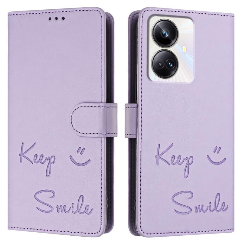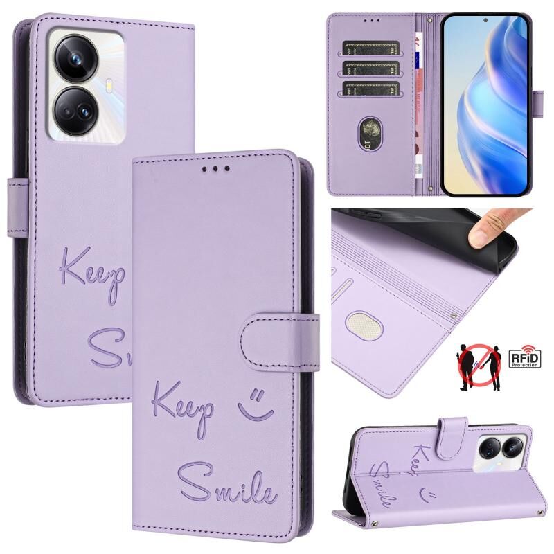 Για Realme 10 Pro + 5G Χαμόγελο ανάγλυφο RFID δερμάτινη θήκη τηλεφώνου (ανοιχτό μοβ)