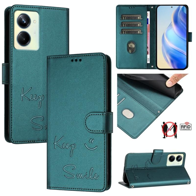 Για Realme 10 Pro 5G Χαμόγελο ανάγλυφο RFID δερμάτινη θήκη τηλεφώνου (Πράσινο παγώνι)