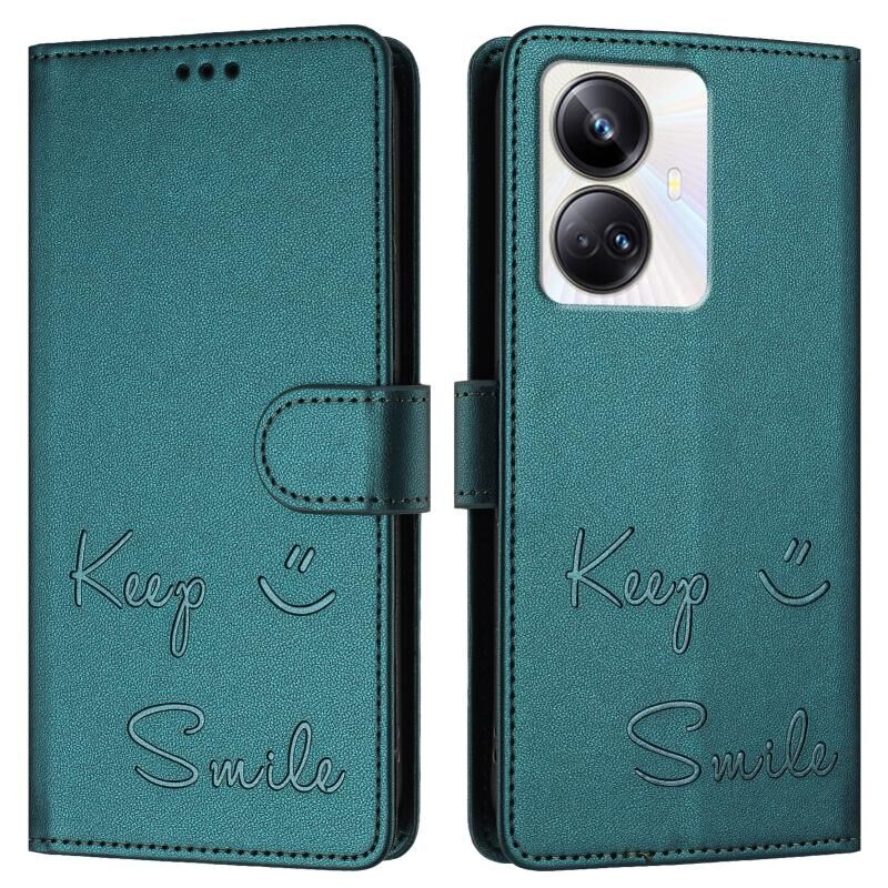 Για Realme 10 Pro + 5G Χαμόγελο ανάγλυφο RFID δερμάτινη θήκη τηλεφώνου (Πράσινο παγώνι)