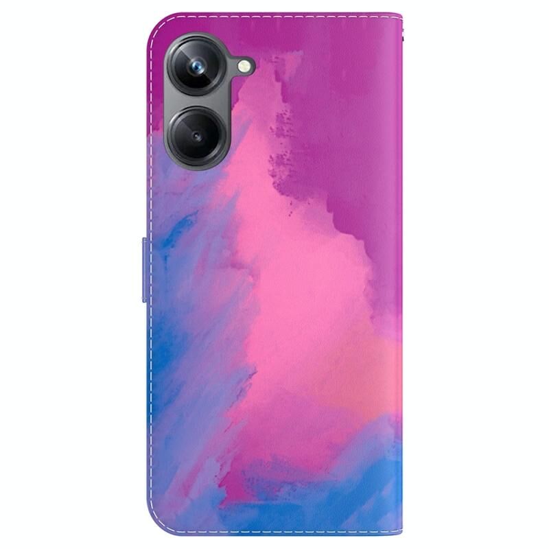 Για Realme 10 Pro 5G Υδατογραφία μοτίβο Flip υπόθεση τηλεφώνου δέρμα (μοβ κόκκινο)
