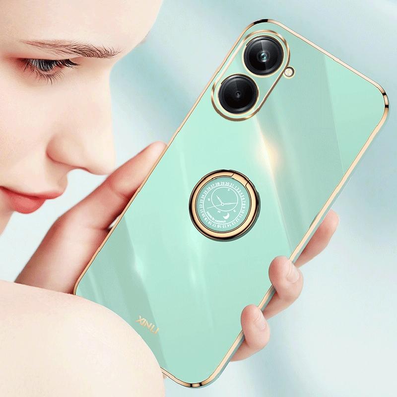 Θήκη τηλεφώνου Realme 10 Pro 5G XINLI με ευθείες άκρες, 6D επιμετάλλωση TPU με δακτύλιο στήριξης (Μέντα Πράσινο)