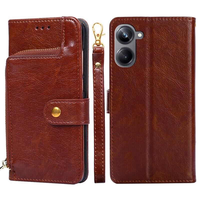 Για Realme 10 Pro 5G φερμουάρ τσάντα δερμάτινη θήκη τηλεφώνου (καφέ)