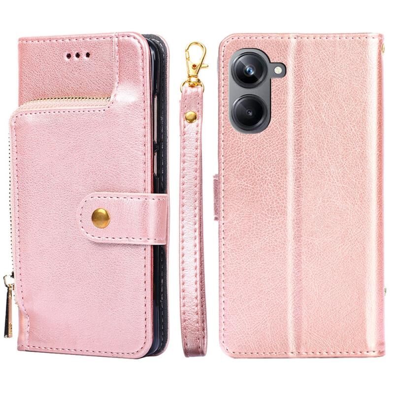 Για Realme 10 Pro 5G φερμουάρ τσάντα δερμάτινη θήκη τηλεφώνου (ροζ χρυσό)