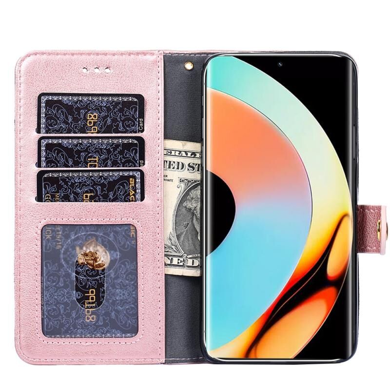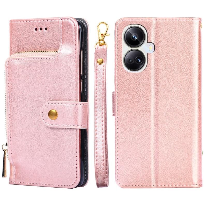 Για Realme 10 Pro + 5G φερμουάρ τσάντα δερμάτινη θήκη τηλεφώνου (ροζ χρυσό)
