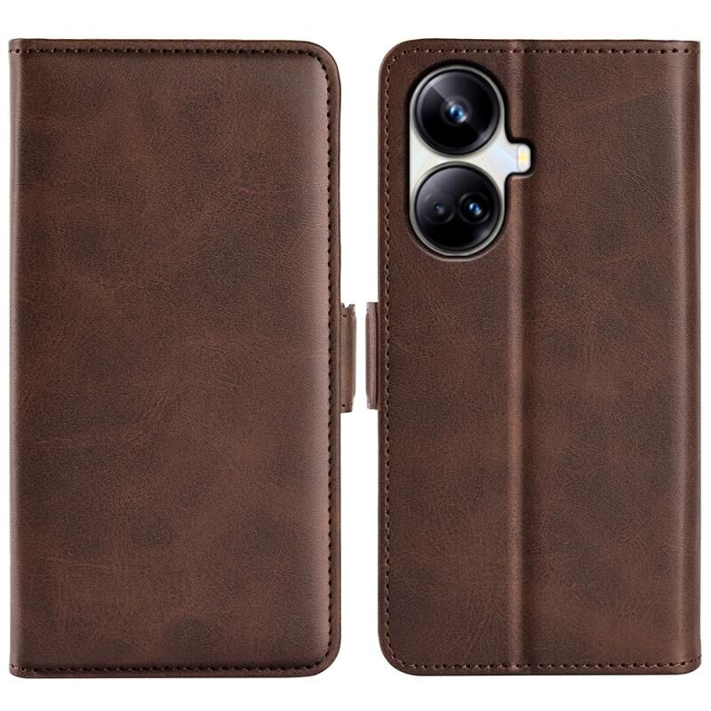Για Realme 10 Pro + Διπλής όψης μαγνητική πόρπη οριζόντια Flip δερμάτινη θήκη τηλεφώνου (καφέ)