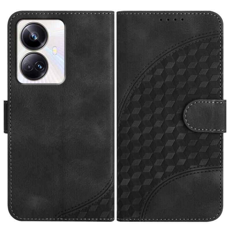 For Realme 10 Pro+ Elephant Head Embossed Phone Leather Case with Lanyard(Black)
