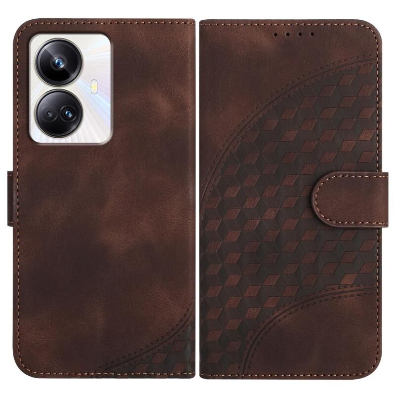 For Realme 10 Pro+ Elephant Head Embossed Phone Leather Case with Lanyard(Coffee)