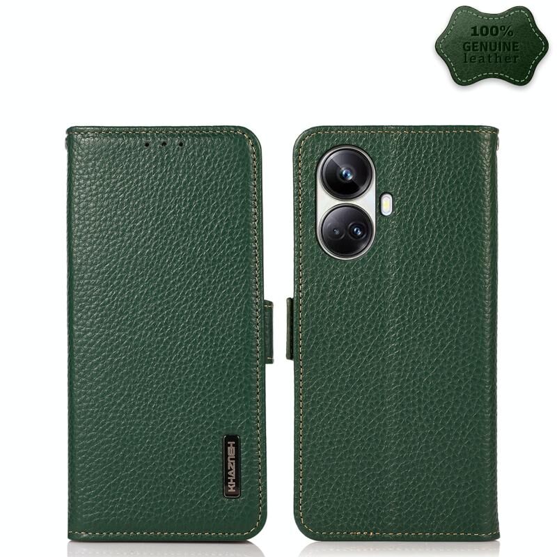 Θήκη τηλεφώνου Realme 10 Pro+ KHAZNEH με μαγνητικό κλείσιμο, από γνήσιο δέρμα Litchi και προστασία RFID (Καφέ)