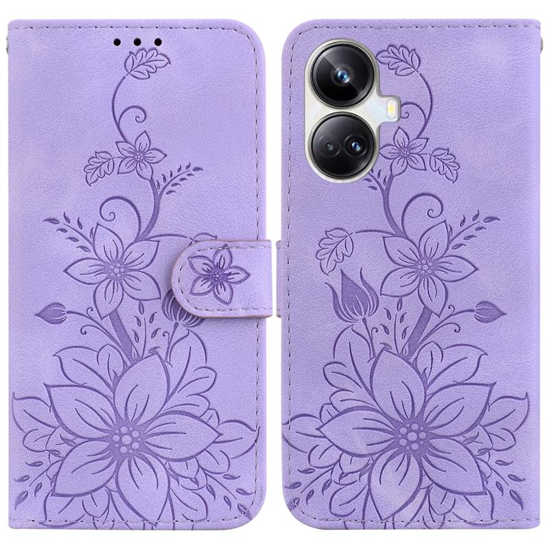For Realme 10 Pro+ Lily Embossed Leather Phone Case(Purple)