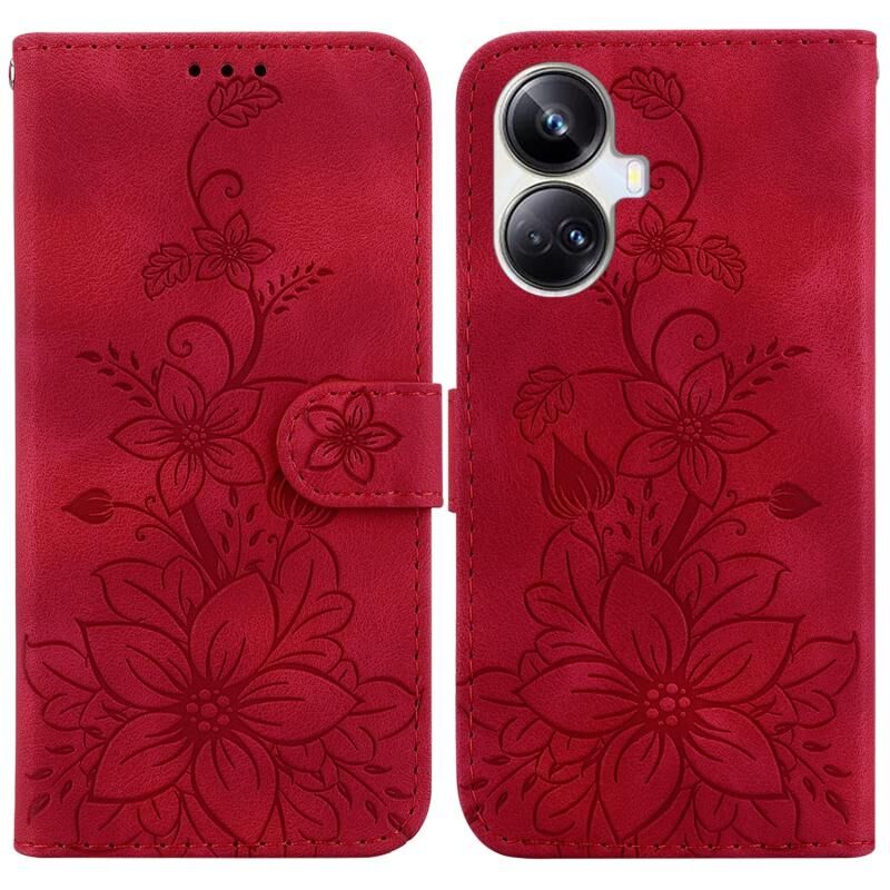 For Realme 10 Pro+ Lily Embossed Leather Phone Case(Red)