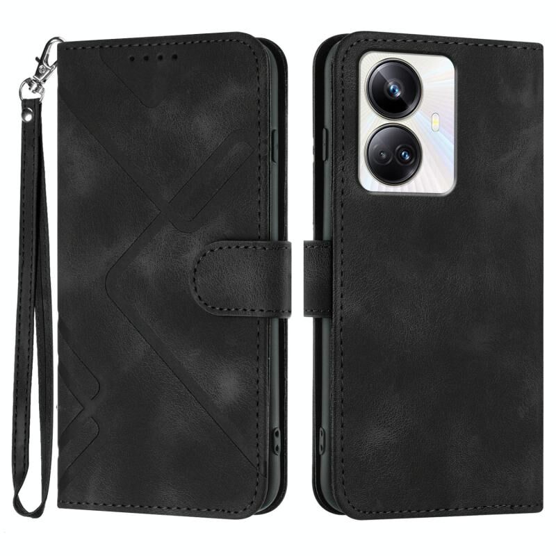 Για Realme 10 Pro + Γραμμή μοτίβο δέρμα αίσθηση δέρμα τηλέφωνο υπόθεση (μαύρο)