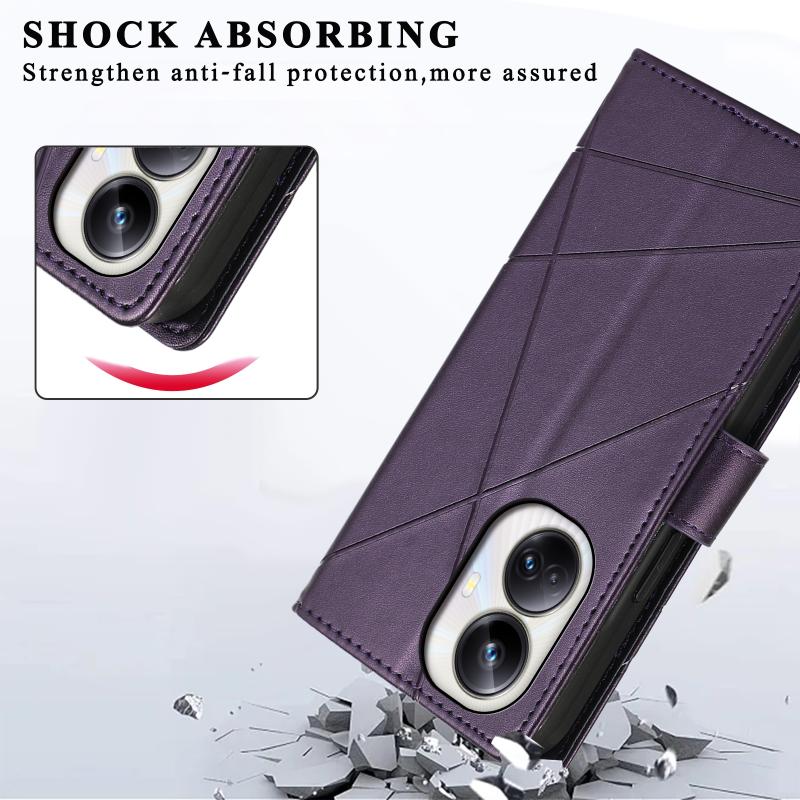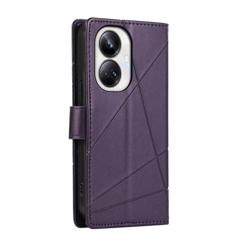 For Realme 10 Pro+ PU Genuine Leather Texture Embossed Line Phone Case(Purple)