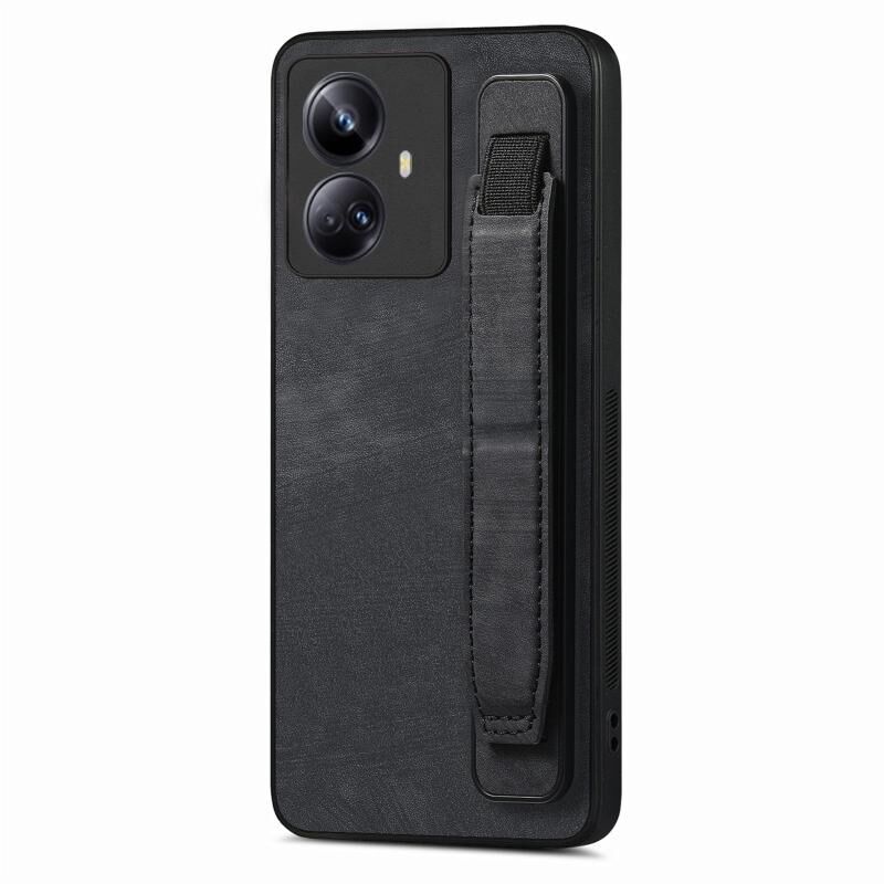 For Realme 10 Pro+ Retro Wristband Holder Leather Back Phone Case(Black)