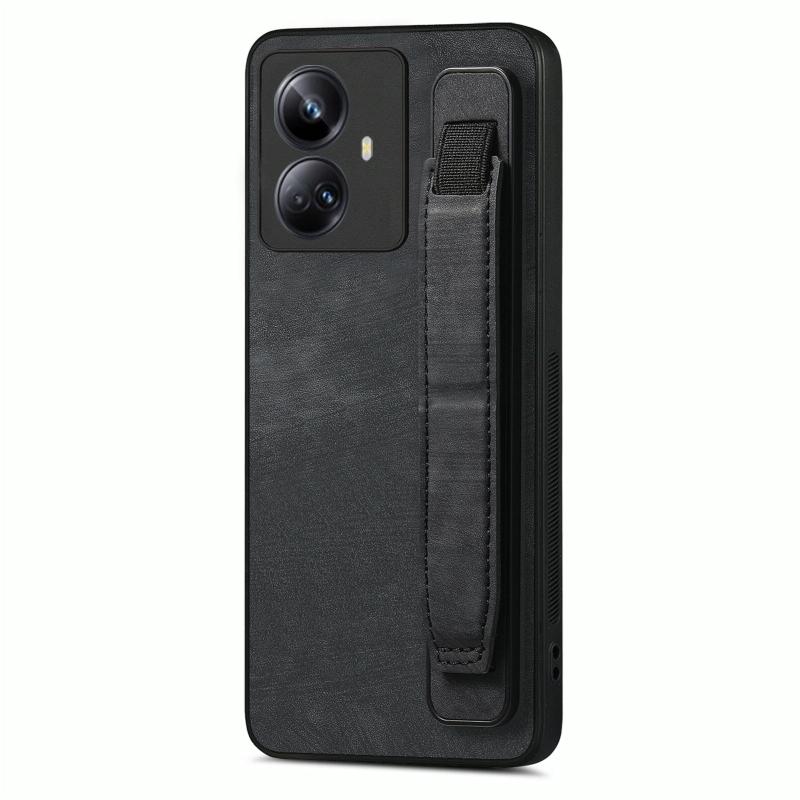 For Realme 10 Pro Retro Wristband Holder Leather Back Phone Case(Black)