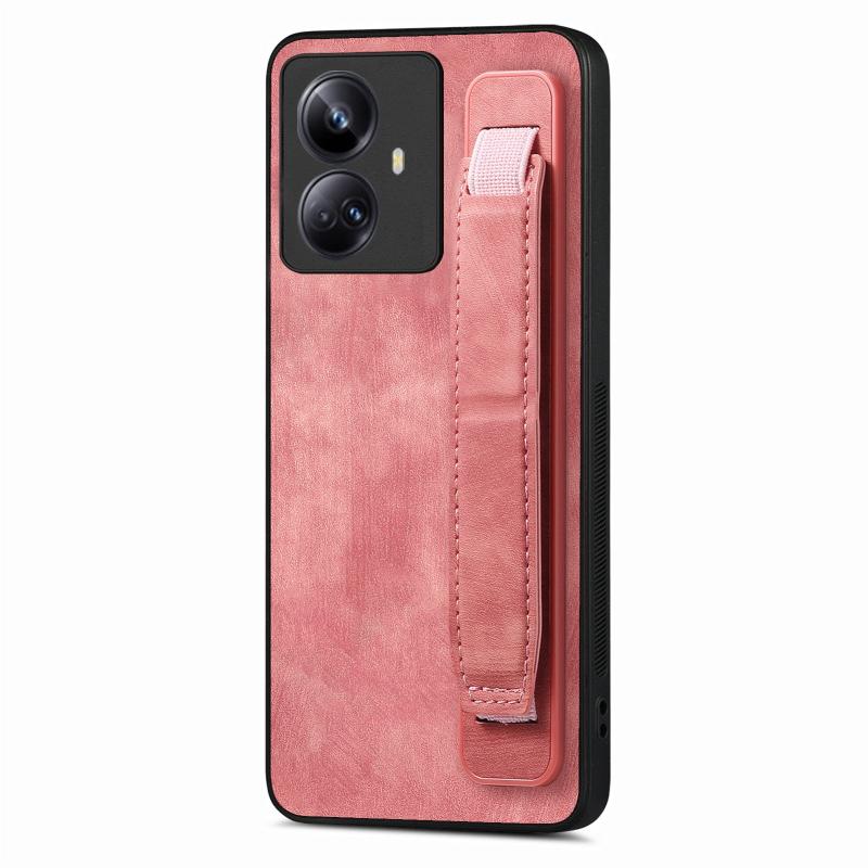 For Realme 10 Pro+ Retro Wristband Holder Leather Back Phone Case(Pink)
